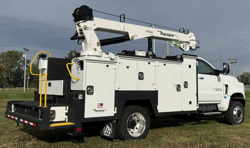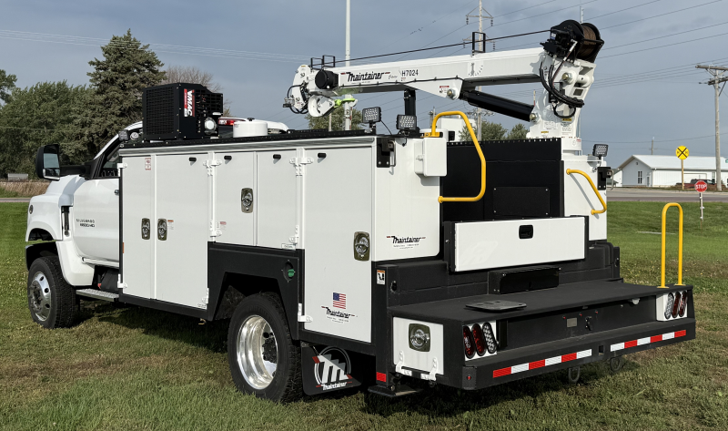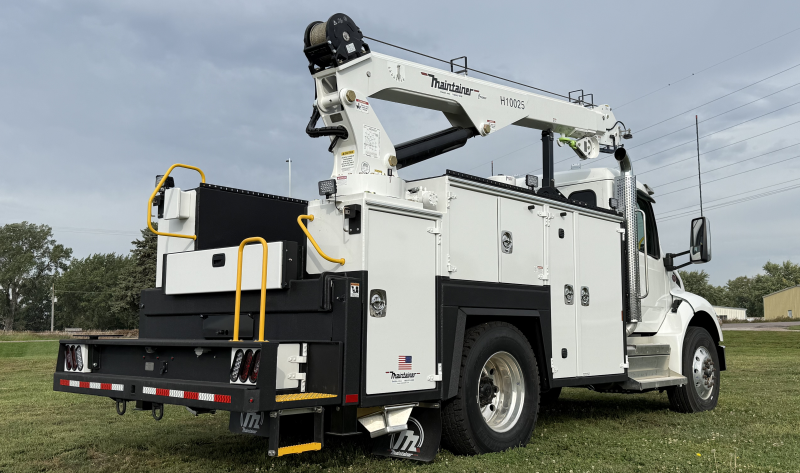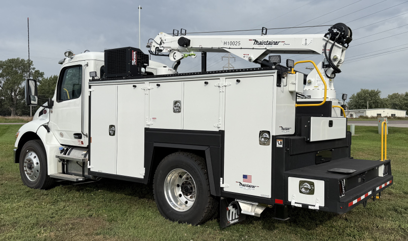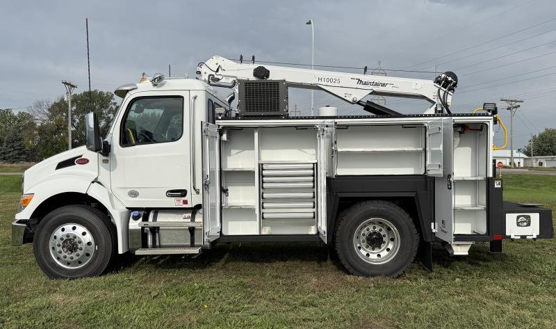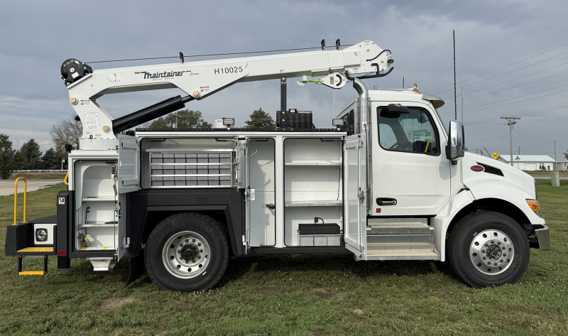 Signature Series 2- 11’ crane body equipped with H10025 crane, pressurized storage system, master compartment locking system, H40 rotary screw air compressor, DuaLock™ drawers, HD Bolt-Bins, LED interior and exterior lighting packages, 26" steel workbench bumper, and much more! Mounted on a 2024 Peterbilt 536, 4x2, 26K-GVWR, PX-7 Diesel, TX-8 auto-trans, white-color, chassis.
